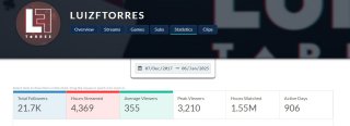 + de 21 mil seguidores+ de 4 mil horas de stream+ de 1,5 milhão de horas assistidas